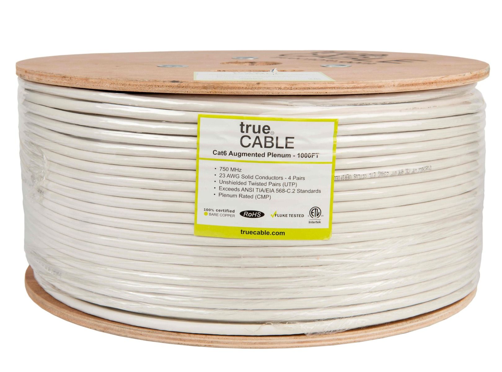 Cat6A Plenum Ethernet Cable, Unshielded, 1000ft, White